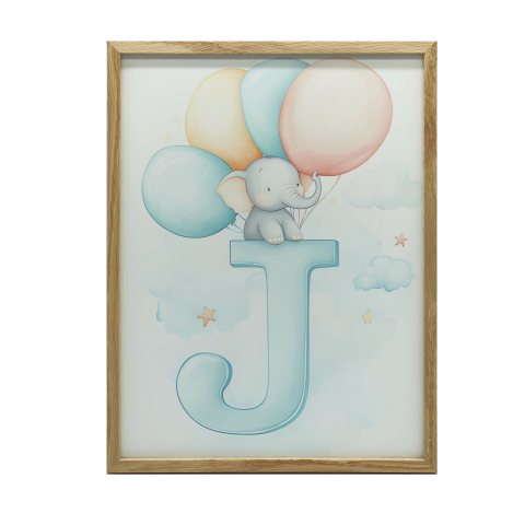 Édes Elefánt J betűs faliplakát: Bűbájos dekoráció gyerekszobába 🐘 Ez a bájos faliplakát egy kedves elefántot ábrázol, aki lufikat tartva ül a J betűn. Tökéletes választás gyerekszobák díszítésére, vidám és egyedi hangulatot teremtve. A kézzel készí...
