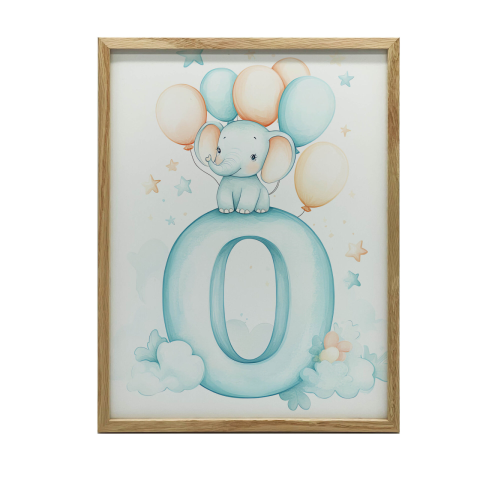 Bűbájos elefántos faliplakát gyerekszobába - 50x70 cm Ez a gyönyörű faliplakát vidám hangulatot teremt a gyerekszobában! Egy aranyos elefántka ül egy nagy "O" betűn, színes lufikkal a feje felett, puha felhők között. A képet Marcin Zbijows...