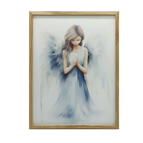 Angyalkás falikép fakeretben: Békés hangulat otthonába 😇 Ez a gyönyörű, kézzel festett stílusú angyalkás falikép tökéletes választás, ha békés és nyugodt hangulatot szeretnél teremteni otthonodban. A finom kék árnyalatok és az angyalka ártatlan képe...