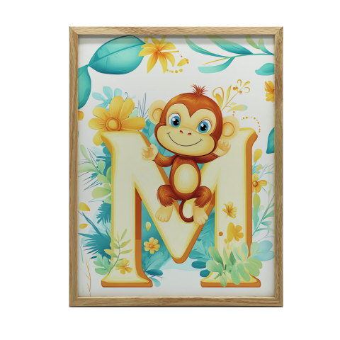 Vidám Majom Faliplakát - M betűvel - 50x70 cm Ez a bájos faliplakát egy mosolygós majmot ábrázol, amely az "M" betűre kapaszkodva ül, színes virágok és levelek között. Tökéletes választás gyerekszobába, de bármilyen helyiségbe, ahol egy kis...