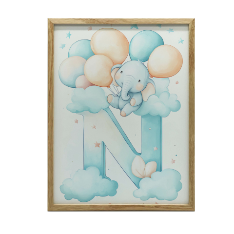N betűs faliplakát felhőkkel és elefánttal - 50x70 cm Ez a gyönyörű faliplakát tökéletes választás gyermekszobába vagy bármely helyiségbe, ahol egy kis vidámságra és egyediségre vágysz. Az aranyos elefánt, a puha felhők és a vidám lufik egyedi hangul...