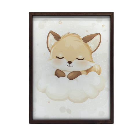 Alvó róka felhőn - Gyönyörű faliplakát gyerekszobába 🦊☁️ Ez a bájos faliplakát egy aranyos rókát ábrázol, amely egy puha felhőn alszik. Tökéletes választás gyerekszobákba, hogy meghitt és álmodozó hangulatot teremtsen. A kép kiváló minőségű, matt pap...