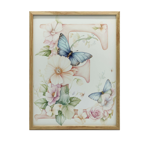 Gyerek Szoba Falikép: Virágok és Pillangók - 50x70 cm Varázsolja el gyermeke szobáját ezzel a gyönyörű faliképpel! 🌸🦋 A képen egy nagybetűs "E" látható, melyet gyönyörű virágok és kecses pillangók díszítenek. A kép tökéletes választás ki...