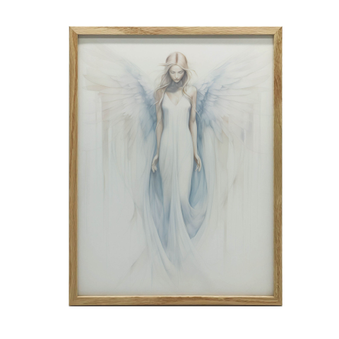 Angyali Béke Poszter - 70x100 cm, Sötétbarna Fakeretes Hozza el az angyali békét otthonába ezzel a gyönyörű, 70x100 cm-es poszterrel! A finom kék árnyalatok és az elegáns sötétbarna fakeret tökéletes harmóniát teremtenek, nyugodt és békés légkört var...