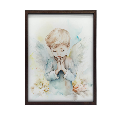 Angyalkás faliplakát: Béke és harmónia otthonába 😇 Ez a gyönyörű faliplakát egy imádkozó angyalkát ábrázol pasztell színekben, sötétbarna fából készült keretben. A 50x70 cm-es méret tökéletes választás a nappaliba, hálószobába vagy akár a gyerekszob...