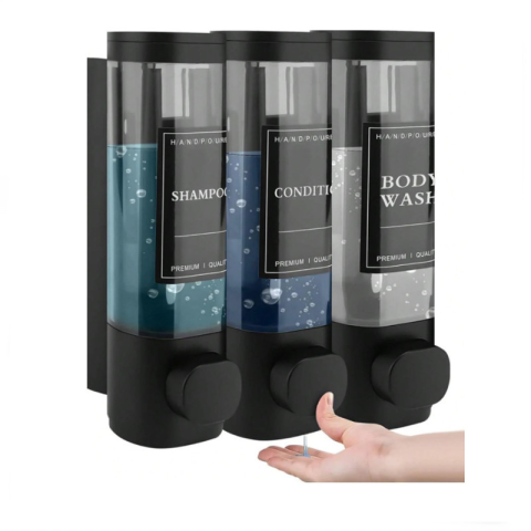 Fali folyékony sampon- és tusfürdő adagoló – 3 rekeszes, fekete dizájn 44266967 Fali folyékony sampon- és tusfürdő adagoló – 3 rekeszes, fekete dizájn Ez a modern és praktikus fali adagoló tökéletes választás fürdőszobákba, hotelekbe vagy wellnes