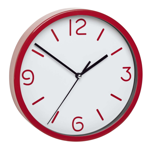 Fali óraCsendes működésPiros kerettel és számokkal