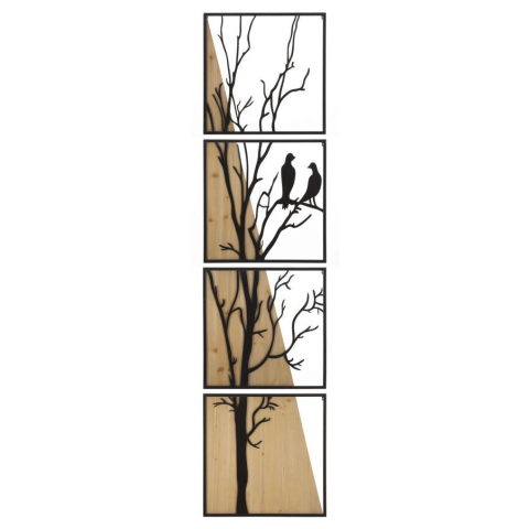 Fali dekoráció madarakkal és fával - 4 részes szett 🐦🌳 Ez a 4 részből álló fali panel szett egyedi dekorációt biztosít otthonába. A fém és fa kombinációjával készült, 3D hatású panelek egy fát és két rajta ülő madarat ábrázolnak. A letisztult, mod...