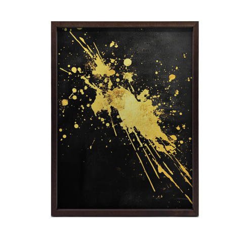 Arany Szikrák Fekete Háttéren - Elegáns Fali Plakát 70x100 cm Díszítse otthonát ezzel a lenyűgöző fali plakáttal, amely arany szikrák fekete háttéren való dinamikus elrendezését mutatja be. A 70x100 cm-es méretű, sötétbarna fa keretes kép tökéletes v...