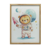 Űrhajós Mackó Plakát - 50x70 cm-es Fa Keretes Falikép Ez a bájos 50x70 cm-es falikép egy aranyos űrhajós mackót ábrázol, aki egy rakétát tart a kezében. Vidám és egyedi dekoráció gyermekszobába, de akár nappaliba is. A sötét tölgyfa keret elegáns me...