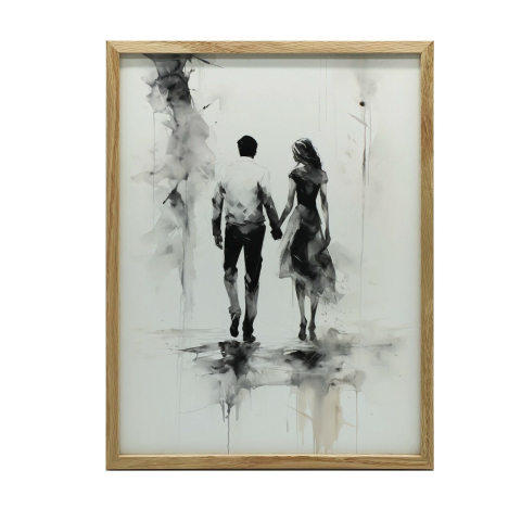 Fekete-fehér pár - Falikép 50x70cm - Elegáns minimalista dekoráció ✨ Ez a gyönyörű fekete-fehér falikép tökéletes választás, ha modern és elegáns dekorációt keres otthonába. A kép egy romantikus párt ábrázol, kézen fogva sétálva, ami békés és meghitt...