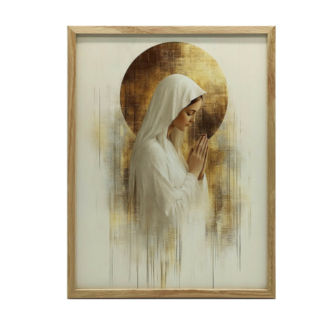 Ima csendben - Mária kép fakeretben: Béke és nyugalom az otthonába 🧘 Ez a gyönyörű kép Marcin Zbijowski művész alkotása, amely áhítatot és békét sugároz. A Máriát ábrázoló festmény tökéletes választás, ha nyugodt és inspiráló légkört szeretne teremt...