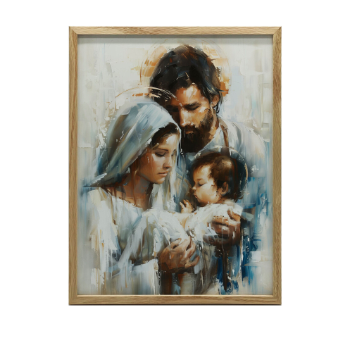 Szent Család kép fa keretben: Karácsonyi hangulat a nappaliban 🎄 Ez a gyönyörű Szent Család kép tökéletes kiegészítője otthonának, különösen a karácsonyi időszakban.  Marcin Zbijowski tehetséges művész alkotása melegséget és békét sugároz. A kép rész...
