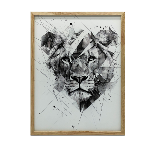 1 kép FALI PLAKÁT FAKERETES OROSZLÁN GEOMETRIÁBAN 50x70 CM