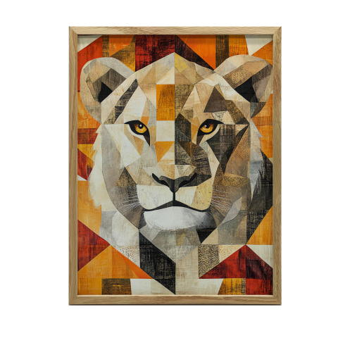 1 kép FALI PLAKÁT FAKERETES OROSZLÁN GEOMETRIÁBAN 70x100 CM