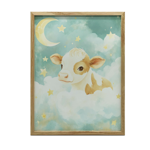 Borjú a felhőkben – Gyönyörű falikép, 50x70 cm Ez a gyönyörű falikép tökéletes választás, ha egyedi és stílusos dekorációval szeretnéd feldobni otthonod. A bájos borjú a felhők között egy álomszerű hangulatot teremt, amely békét és nyugalmat sugároz....