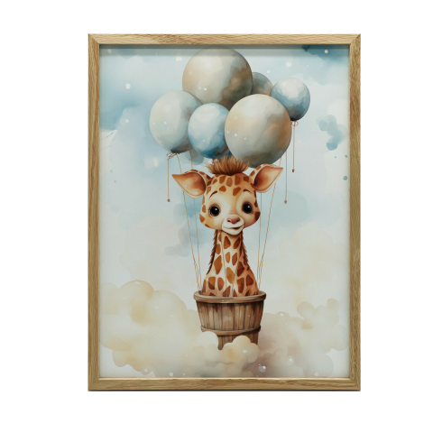 Zsiráf léggömbös poszter képpel - 70x100 cm-es képkeretben Varázsolja el otthonát ezzel a gyönyörű, 70x100 cm-es zsiráf motívumú poszterrel, amely egy elegáns fekete alumínium keretben érkezik. A pasztell színek és a bájos zsiráf biztosan feldobják a...