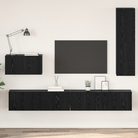 1 kép Fali TV Szekrény polcokkal Egyéb tárolóval ajtóval 4 pcs Fekete tölgy