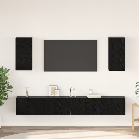 1 kép Fali TV Szekrény polcokkal tárolóval ajtóval 6 pcs Fekete tölgy Faanyag