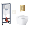 Falra szerelhető WC szett - a készlet tartalmazza: könnyű fali modul / falra történő előszerelés, GROHE WC-kosár, Skate Cosmopolitan vezérlőgomb és WC-ülőke. A WC-ülőke duroplastból készült. A vezérlőgomb műanyagból készült és Cool Sunrise színű.