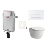 Fali wc szett - a szett tartalmaz modul befalazandó, WC tartállyal Alcaplast és WC tartály. WC ülőke alapanyaga Duroplast. Nyomógomb alapanyaga műanyag fehér színu.