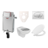 Fali wc szett - a szett tartalmaz modul befalazandó, WC tartállyal Alca és WC tartály. WC ülőke alapanyaga Duroplast. Nyomógomb alapanyaga műanyag krómozott fényes színu.