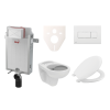 Fali wc szett - a szett tartalmaz modul befalazandó, WC tartállyal Alca és WC tartály. WC ülőke alapanyaga Duroplast. Nyomógomb alapanyaga műanyag fehér színu.