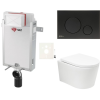 Függő WC-készlet - a készlet tartalmaz egy vortex öblítőt, egy fali válaszfal modult, egy SAT WC-tartályt, egy SAT vezérlőgombot és egy WC-ülőkét. A WC-ülőke duroplastból készült. A vezérlőgomb műanyagból készült, matt fekete színben.