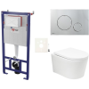 Függő WC-készlet - a készlet tartalmaz egy vortex öblítőt, egy könnyű falra / válaszfalra szerelhető modult, egy SAT WC-tartályt, egy SAT vezérlőgombot és egy WC-ülőkét. A WC-ülőke duroplast anyagból készült. A vezérlőgomb műanyagból készült és krómfényű.