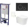 Függő WC-készlet - a készlet tartalmaz egy vortex öblítőt, egy könnyű falra / válaszfalra szerelhető modult, egy SAT WC-tartályt, egy SAT vezérlőgombot és egy WC-ülőkét. A WC-ülőke duroplast anyagból készült. A vezérlőgomb műanyagból készült, matt fekete színben.
