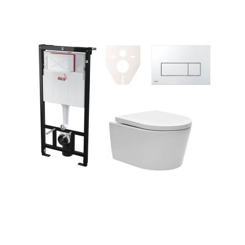 Praktikus WC-készlet, amely egy Alca modulból (AM1011120 típus), egy Alca vezérlőgombból (M571 típus), egy hangszigetelő betétből és egy SAT WC-ből (SATBRE010RREXP típus), valamint egy tartós duroplastból készült ülőkéből áll. Lassú összecsukási funkcióval (Softclose) és Easy lock funkcióval (az ülés fel- és leszerelése egyetlen szorítással - egyszerű karbantartás).