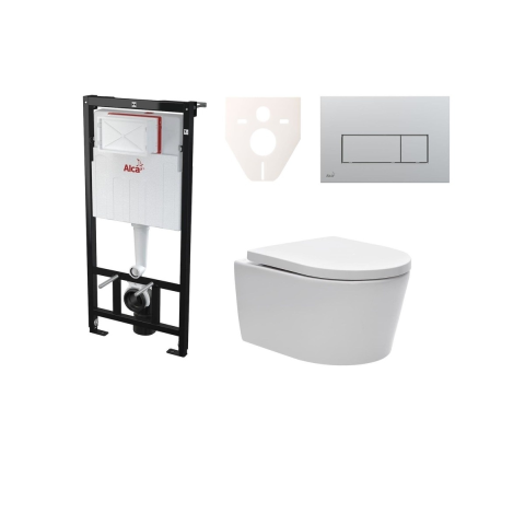 Praktikus WC-készlet, amely egy Alca modulból (AM1011120 típus), egy Alca vezérlőgombból (M572 típus), egy hangszigetelő betétből és egy SAT WC-ből (SATBRE010RREXP típus), valamint egy tartós duroplastból készült ülőkéből áll. Lassú összecsukási funkcióval (Softclose) és Easy lock funkcióval (az ülés fel- és leszerelése egyetlen szorítással - egyszerű karbantartás).