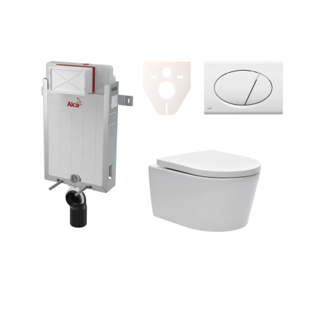Praktikus WC-készlet, amely egy Alca modulból (AM1151000 típus), egy Alca vezérlőgombból (M70 típus), egy hangszigetelő betétből és egy SAT WC-ből (SATBRE010RREXP típus), valamint egy tartós duroplastból készült ülőkéből áll. Lassú összecsukási funkcióval (Softclose) és Easy lock funkcióval (az ülés fel- és leszerelése egyetlen szorítással - egyszerű karbantartás).