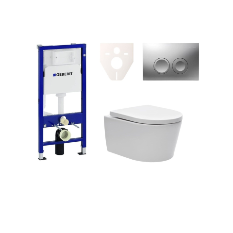 Praktikus WC-készlet, amely egy Geberit modulból (458.103.00.1 típus), egy Geberit vezérlőgombból (115.125.46.1 típus), egy hangszigetelő betétből és egy SAT WC-ből (SATBRE010RREXP típus) áll, amely tartós duroplastból készült ülőkével rendelkezik. Lassú összecsukási funkcióval (Softclose) és Easy lock funkcióval (az ülés fel- és leszerelése egyetlen szorítással - egyszerű karbantartás).