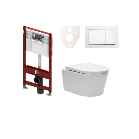 Praktikus WC-készlet, amely egy TECE modulból (9.300.302 típus), egy TECE vezérlőgombból (9.240.700 típus), egy hangszigetelő betétből és egy SAT WC-ből (SATBRE010RREXP típus) áll, amely tartós duroplastból készült ülőkével rendelkezik. Lassú összecsukási funkcióval (Softclose) és Easy lock funkcióval (az ülés fel- és leszerelése egyetlen szorítással - egyszerű karbantartás).