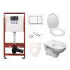 Fali wc szett - a szett tartalmaz modul könnyűszerkezetes falakba / falsík előtti, WC tartállyal TECE és WC tartály. WC ülőke alapanyaga Duroplast. Nyomógomb alapanyaga műanyag fehér színu.