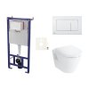 Fali wc szett - a szett tartalmaz modul könnyűszerkezetes falakba / falsík előtti, WC tartállyal SAT és WC tartály. WC ülőke alapanyaga Duroplast. Nyomógomb alapanyaga műanyag Fehér fényes színu.
