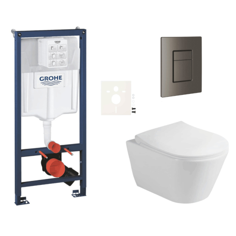 Falra szerelhető WC-készlet - a készlet a következőket tartalmazza: könnyű fali modul / fal előtti rögzítés, GROHE WC-kagyló, Skate Cosmopolitan vezérlőgomb és WC-ülőke.