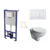 Fali wc szett - a szett tartalmaz modul könnyűszerkezetes falakba / falsík előtti, WC tartállyal SAT és WC tartály. WC ülőke alapanyaga Duroplast. Nyomógomb alapanyaga műanyag Fehér fényes színu.