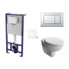 Fali wc szett - a szett tartalmaz modul könnyűszerkezetes falakba / falsík előtti, WC tartállyal SAT és WC tartály. WC ülőke alapanyaga Duroplast. Nyomógomb alapanyaga műanyag krómozott fényes színu.