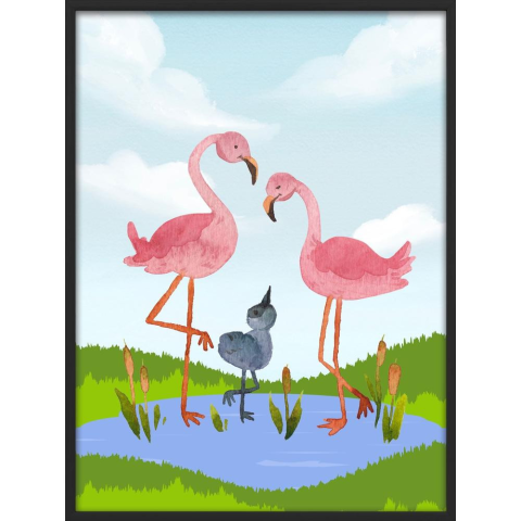 1 kép Falikép – Egyedi feliratos flamingók (videóvetítő opcióval)
