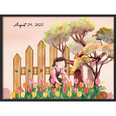 1 kép Falikép - Kislány a kertben, felirattal (videóvetítő opcióval)