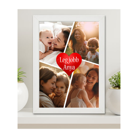 Falikép kollázs fotókkal, legjobb anya. Kollázs fényképes A4 méretű falikép a legjobb Édesanyának. Különleges ajándék Édesanyád születésnapjára, anyák napjára vagy karácsonyra. Egy meglepetés amiről bármikor eszébe jutsz, ha ránéz. Falikép, melyen egy 4 f