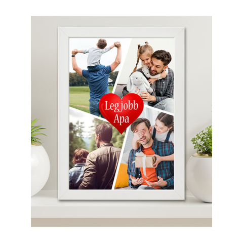 Falikép kollázs fotókkal, legjobb apa. Kollázs fényképes A4 méretű falikép a legjobb Édesapáknak. Különleges ajándék Apukád születésnapjára, névnapjára vagy apák napjára. Egy meglepetés amiről bármikor eszébe jutsz, ha ránéz. Falikép, melyen egy 4 fotóból