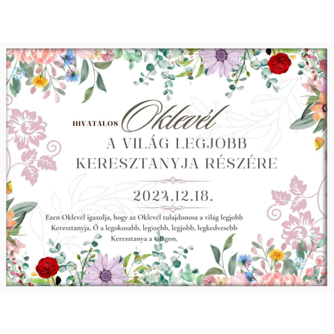 1 kép Falikép – Legjobb Keresztanya Oklevél (videóvetítő opcióval)