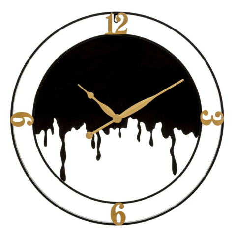 Modern, csepegő festékhatású falióra - 66 cm átmérőjű fekete-arany dizájn 🎨⏱️ Ez a stílusos falióra egyedi megjelenést kölcsönöz otthonának. A fekete és arany színkombinációja elegáns és modern hatást kelt, a csepegő festékhatás pedig egyedi karakte...