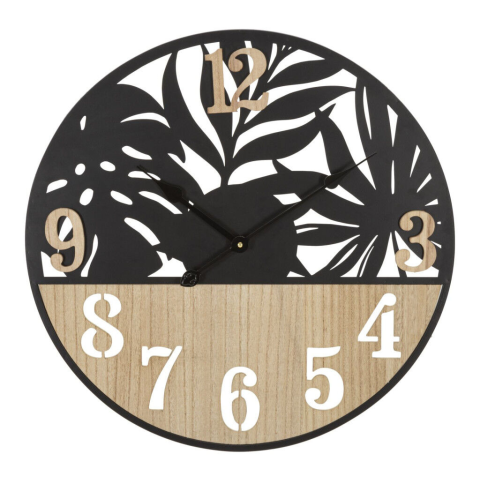 Falióra pálmalevél mintával - 60 cm átmérőjű, elegáns otthoni dekoráció 🌴 Ez a stílusos falióra trópusi növények leveleit idéző dizájnnal feldobja otthonod hangulatát. A fekete fém keret és a világos fa hatású alsó rész elegáns kontrasztot alkot, mo...