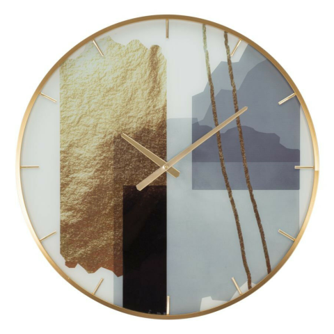 Elegáns falikóra modern absztrakt mintával - 60 cm átmérőjű Ez a stílusos falikóra feldobja otthonod hangulatát! A 60 cm átmérőjű óra arany színű kerettel és lenyűgöző, modern absztrakt mintával díszített üveglapból készült. A sötétkék, szürke és ar...