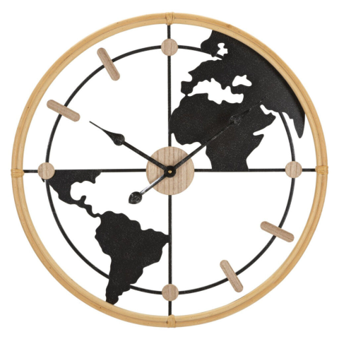 Világtérkép Falióra - Elegáns, modern dizájn 🌎 Ez a 60 cm átmérőjű kerek falióra egyedi megjelenést kölcsönöz otthonának. A letisztult dizájn és a világtérképpel díszített számlap stílusos és modern hangulatot teremt. A fa és fém kombinációja elegá...