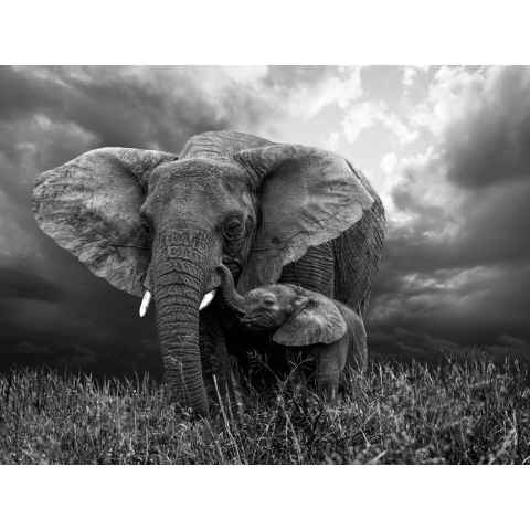 1 kép Falmatrica Elefánt fekete-fehér színben, 250 x 200 cm